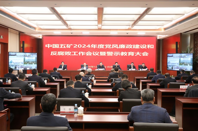 1月29日,中國五礦召開2024年度黨風廉政建設和反腐敗工作會議暨警示教育大會,深入學習貫徹二十屆中央紀委三次全會精神特別是習近平總書記關(guān)于黨的自我革命的重要思想,認真落實國務院國資委黨風廉政建設和反腐敗工作會議要求,總結(jié)2023年工作,研究部署2024年重點任務。中國五礦黨組書記、董事長翁祖亮出席會議并講話。總經(jīng)理、黨組副書記國文清主持會議。黨組副書記、董事王杰之傳達中央紀委三次全會精神。紀檢監(jiān)察組組長、黨組成員張貞民作紀檢監(jiān)察工作報告并通報查處的典型案件。中國五礦黨組其他成員出席會議。